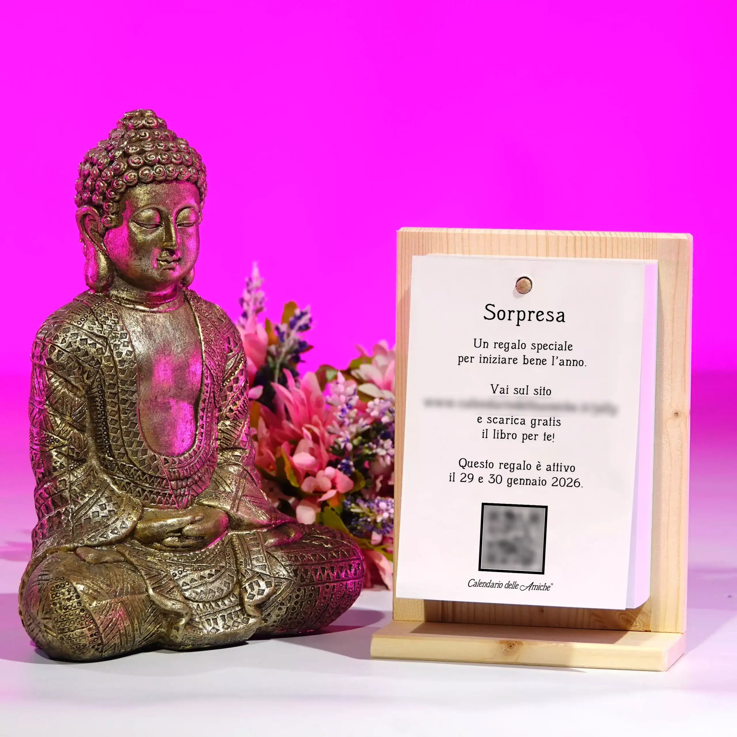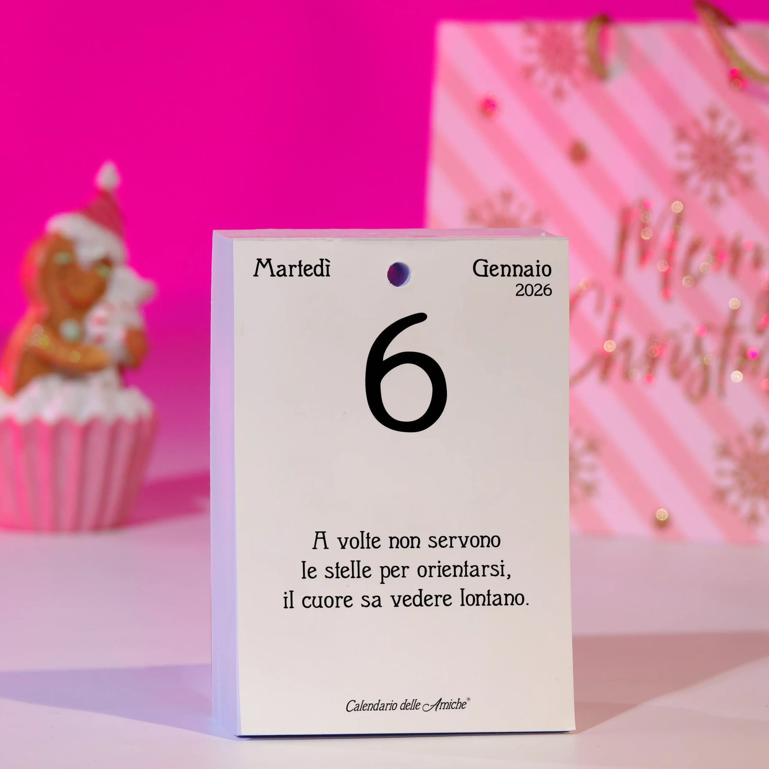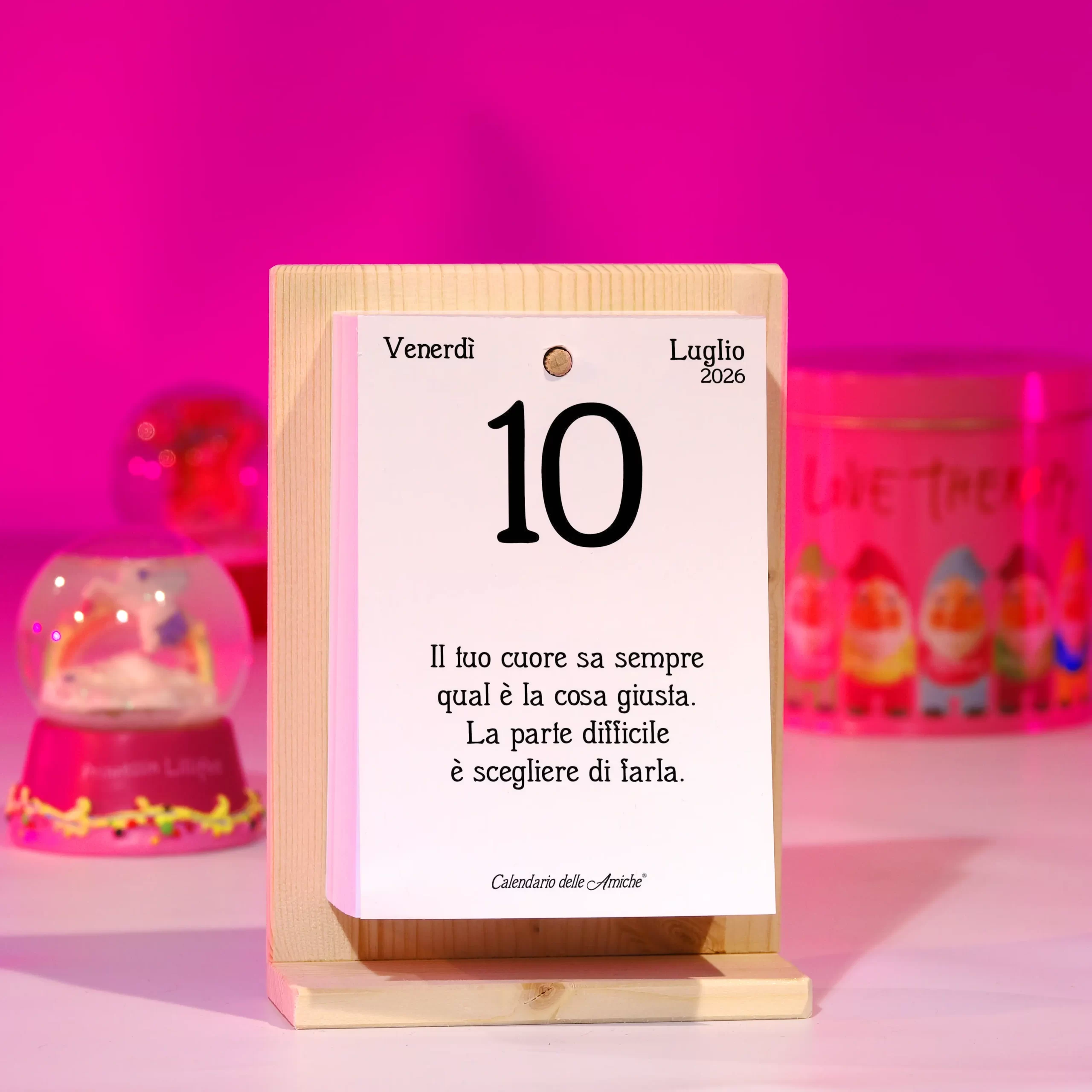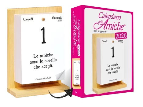 Il Calendario delle Amiche® 2026 con supporto in legno è il famoso Calendario Geniale® in versione femminile, con 365 nuove frasi e pensieri filosofici dedicati alle donne che vogliono crescere e rinnovarsi.