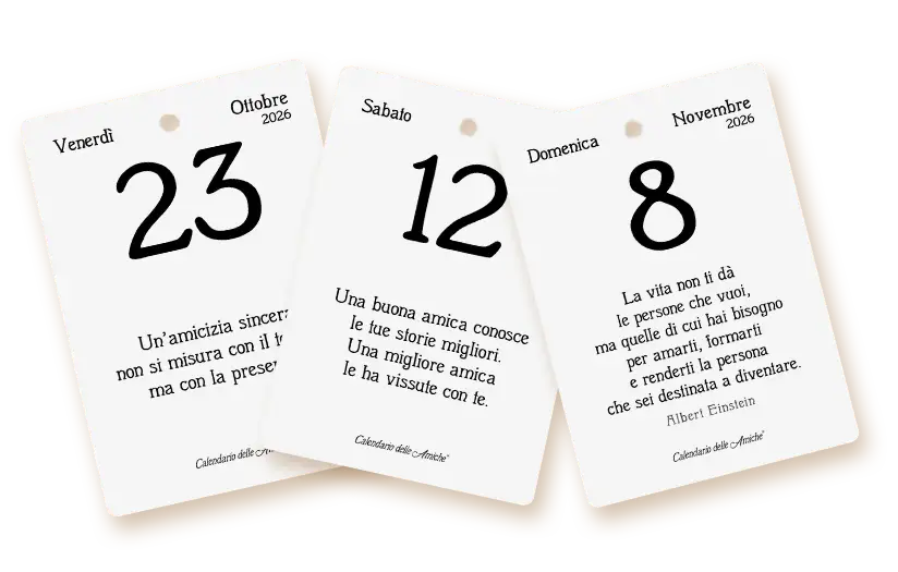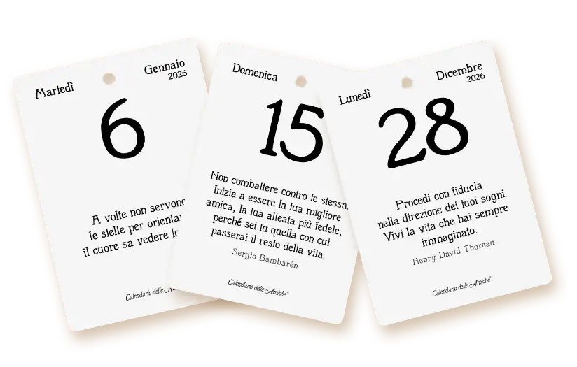 Scegli il Calendario delle Amiche®, arricchito di nuove frasi filosofiche e motivazionali per sorridere e sognare.