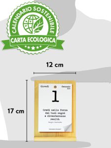 Formato del supporto o 12x17x5 cm, perfetto per il Calendario, può essere riutilizzato negli anni.